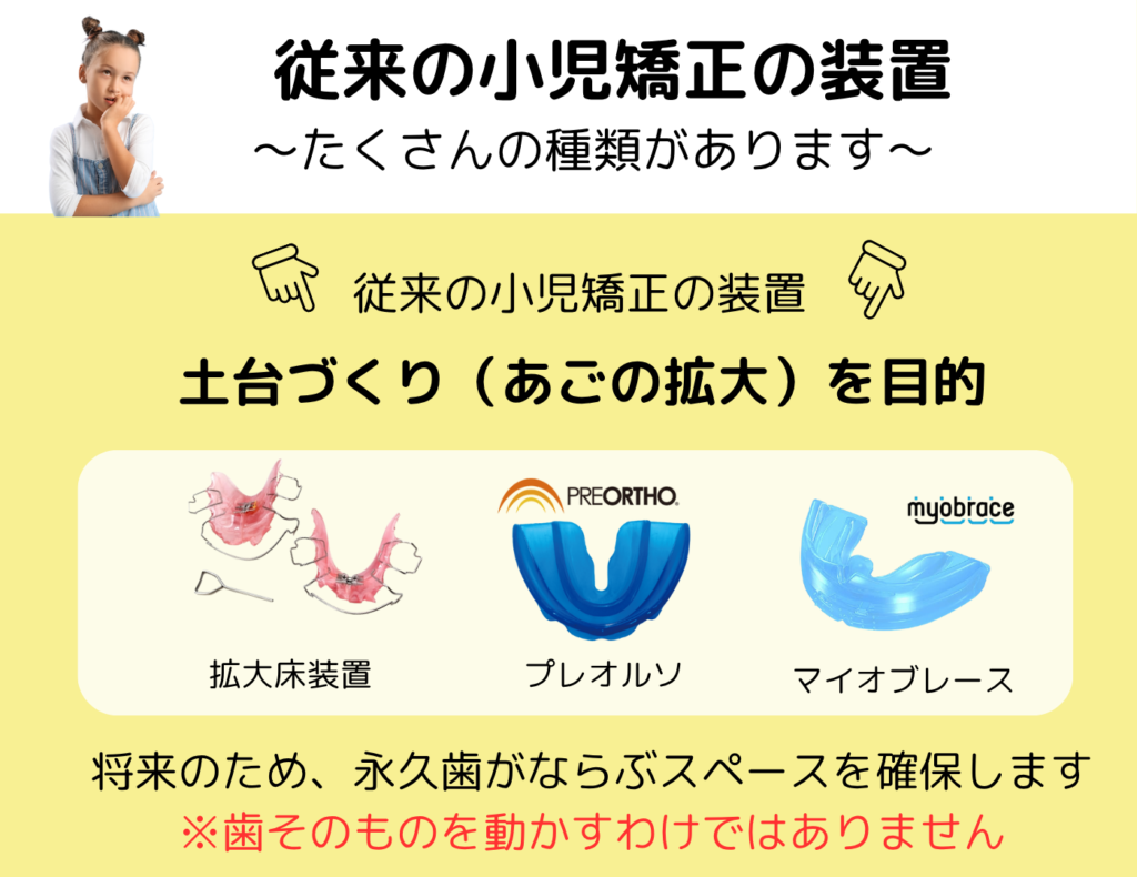 これらで永久歯がきれいに並ぶスペースを確保し、将来の歯並びを整える準備をします