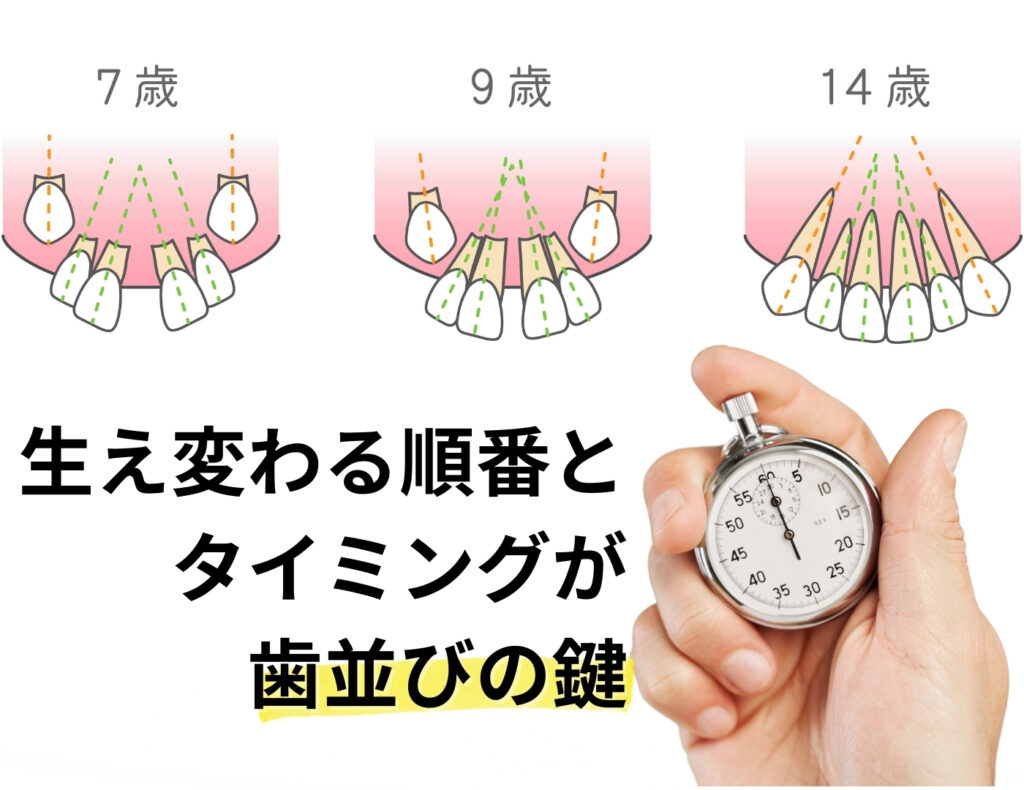 この順番が守られてこそ、スムーズに生え変わり整った歯並びとなります