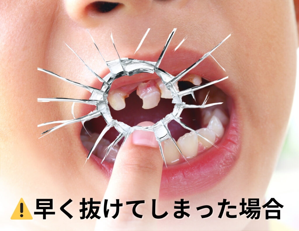 予定より早く乳歯が抜けてしまった場合は、放置せずに抜けた部分のスペースを守る処置が必要です