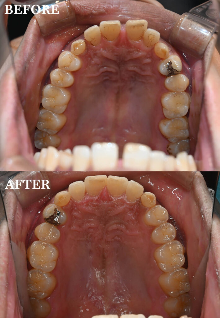 | 治療で気を付けた点 | 上顎の乳歯はいつかは抜歯となるため、その時は欠損に対する補綴処置が必要になってくることをお伝えしました。 |