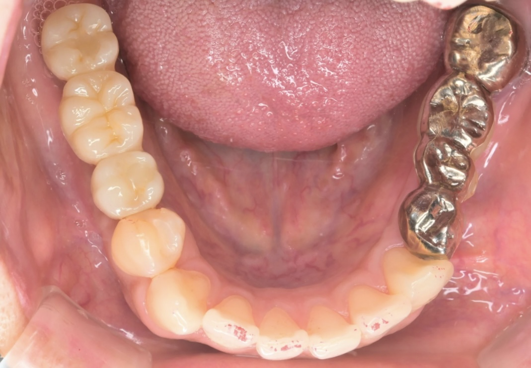 症例写真 治療詳細 年齢・性別 40代 女性 患者様のお悩み 右下でかめない 治療期間 インプラント、補綴で約1年 リスク・副作用 術後感染、腫脹、疼痛リスク 治療費用 約90万円 治療経過 口腔内の状況 右下の奥歯がないことでかみ合わせのバランスが崩れ、反対側や前歯に過度な負担がかかっている状態でした。左下のブリッジを支える歯の状態もあまり良くありませんが …